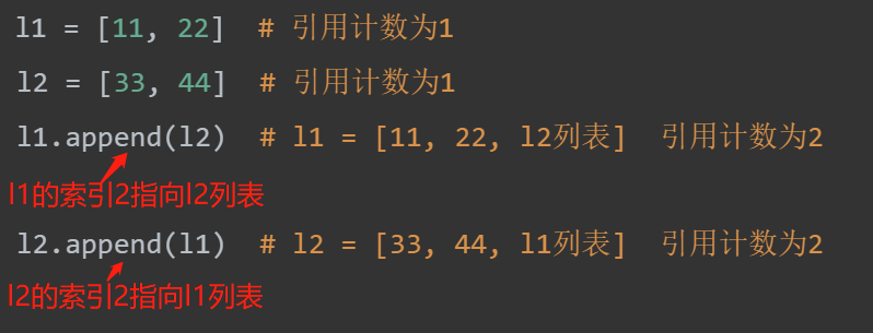 当数据值身上的引用计数不为0的时候,永远不会被垃圾回收机制回收
