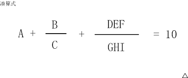 #include<iostream> #include<algorithm> using namespace std; int a[9]={1,2,3,4,5,6,7,8,9}; int main() { int res=0; do { int A=a[0]; int B=a[1]; int C=a[2]; int DEF=a[3]*100+a[4]*10+a[5]; int GHI=a[6]*100+a[7]*10+a[8]; if(A*C*GHI+GHI*B+C*DEF==10*C*GHI) { res++; } }while(next_permutation(a,a+9)); cout<<res; return 0; }