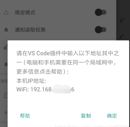 - 确保手机和电脑在同一个局域网中。你可以将手机和电脑都连到同一个Wifi上,或者电脑开启热点给手机连接,或者手机开启热点给电脑连接。如果以上都无法做到,你还可以通过USB线连接手机,参考《adb连接手机(USB)》。