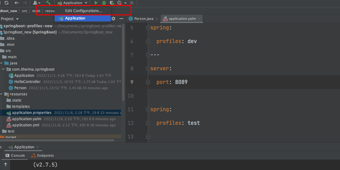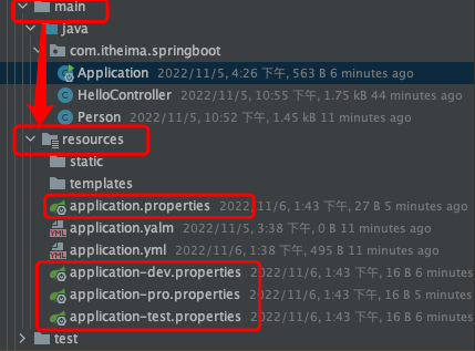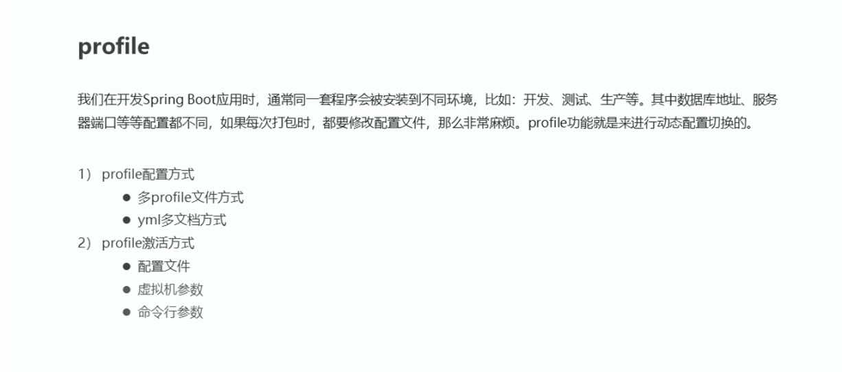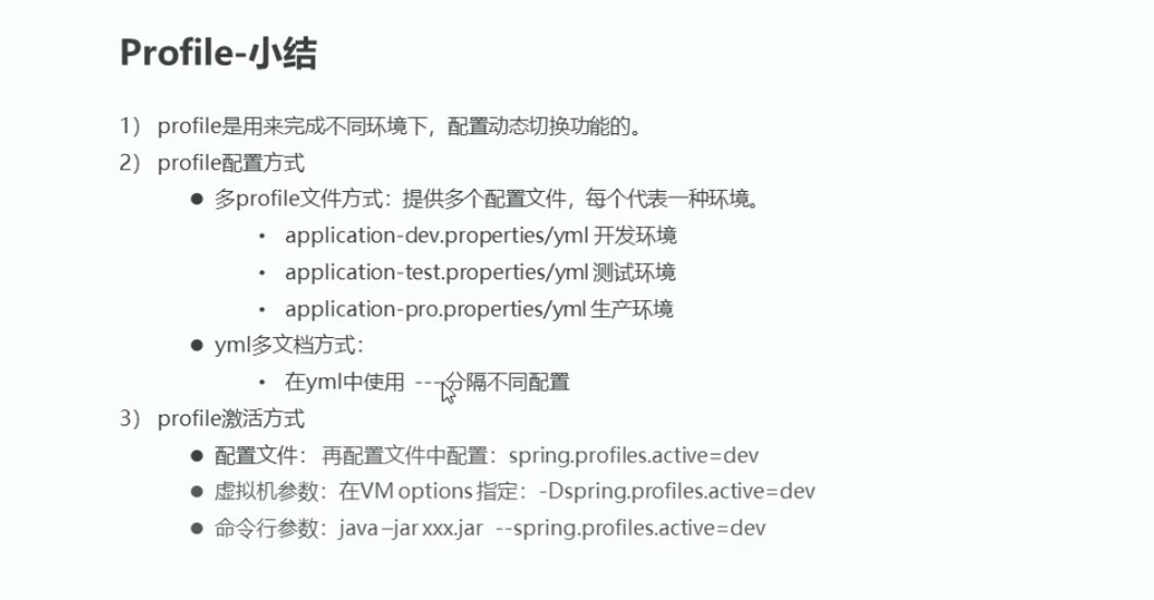 applicat.properties-dev 、applicat.properties-test、applicat.properties-pro 里面写各自的配置就可以,主要用applicat.properties来调动实用哪个profiles文件