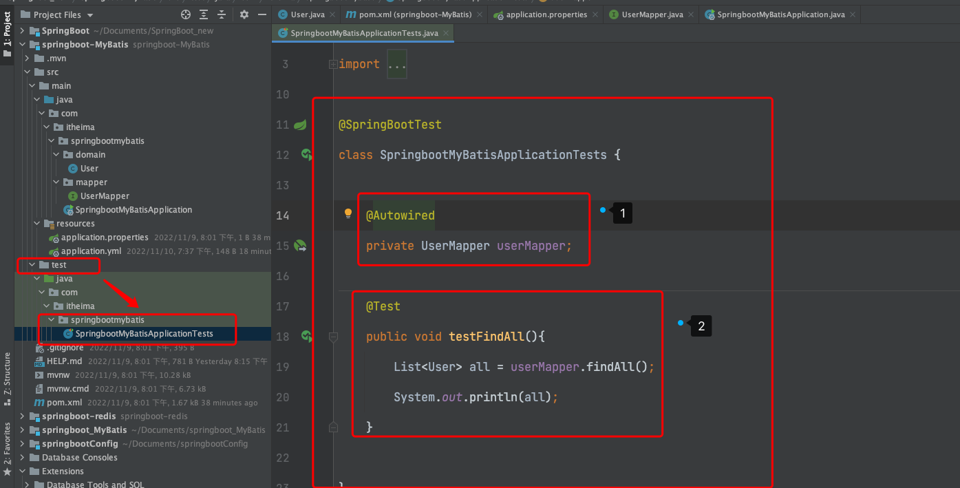 路径:src/test/java/com/itheima/springbootmybatis/SpringbootMyBatisApplicationTests.java