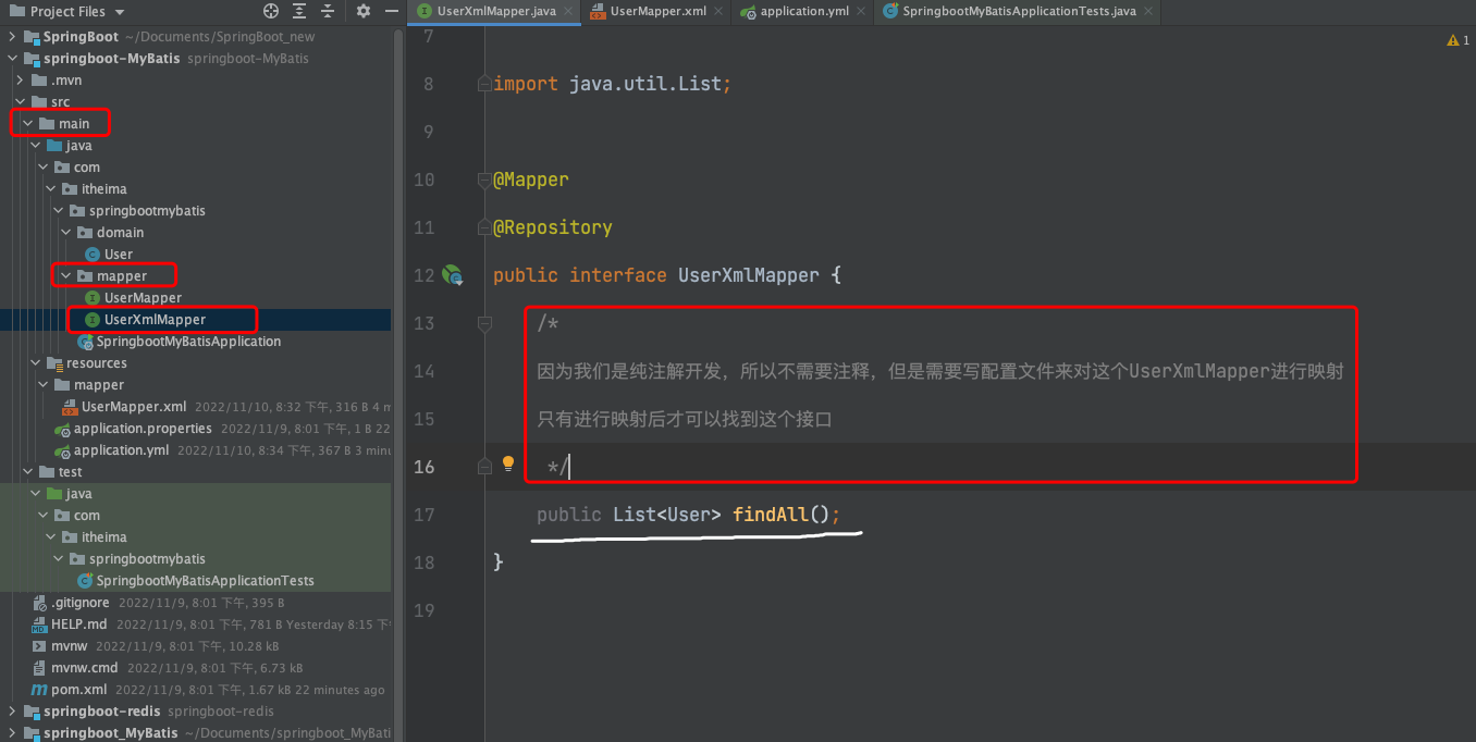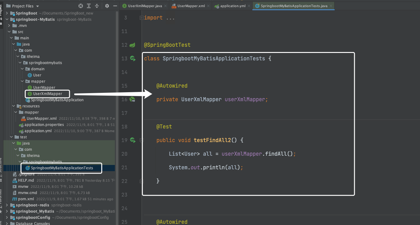 import com.itheima.springbootmybatis.mapper.UserXmlMapper;
