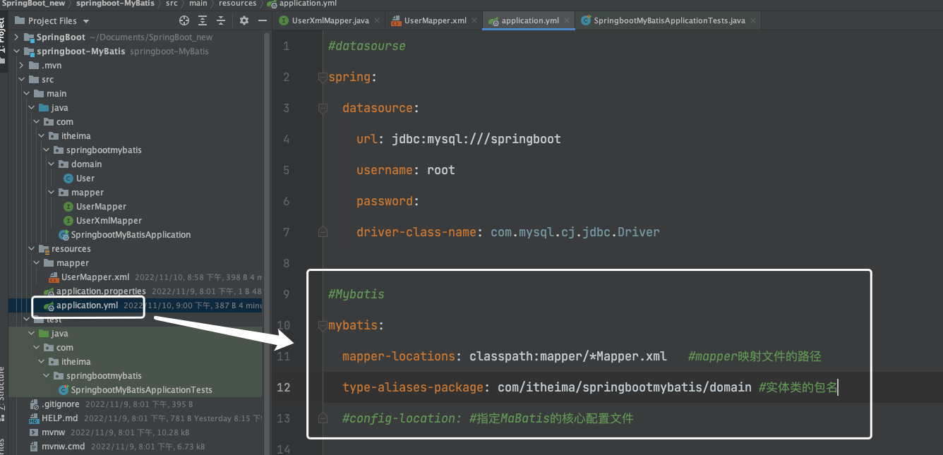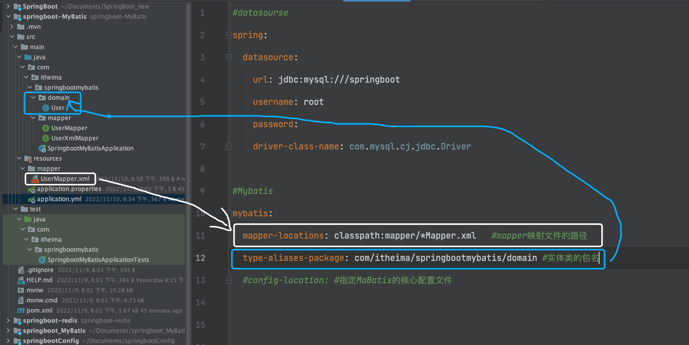 type-aliases-package: com/itheima/springbootmybatis/domain #实体类的包名