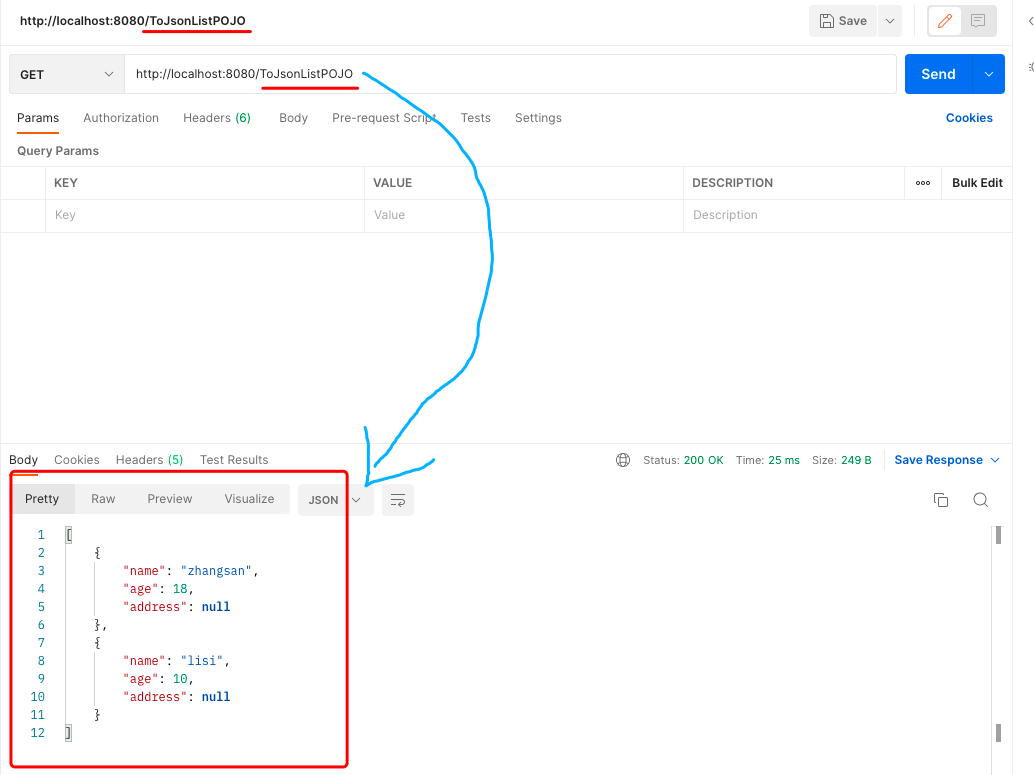 2.6:PostMan测试(/ToJsonListPOJO方法):