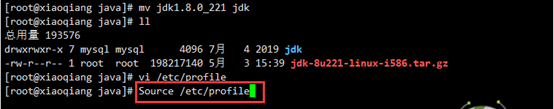 3)重命名:mv jdk1.8.0-221 jdk。【语句格式:mv+解压前的文件名+解压后的文件名】