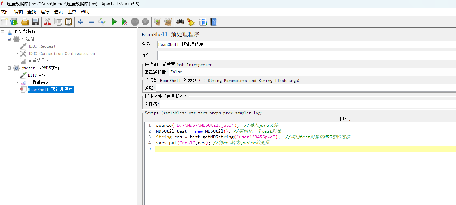 Jmeter_使用自带MD5函数/自定义的MD5的jar文件/自定义的MD5的class文件/自定义的MD5的java文件