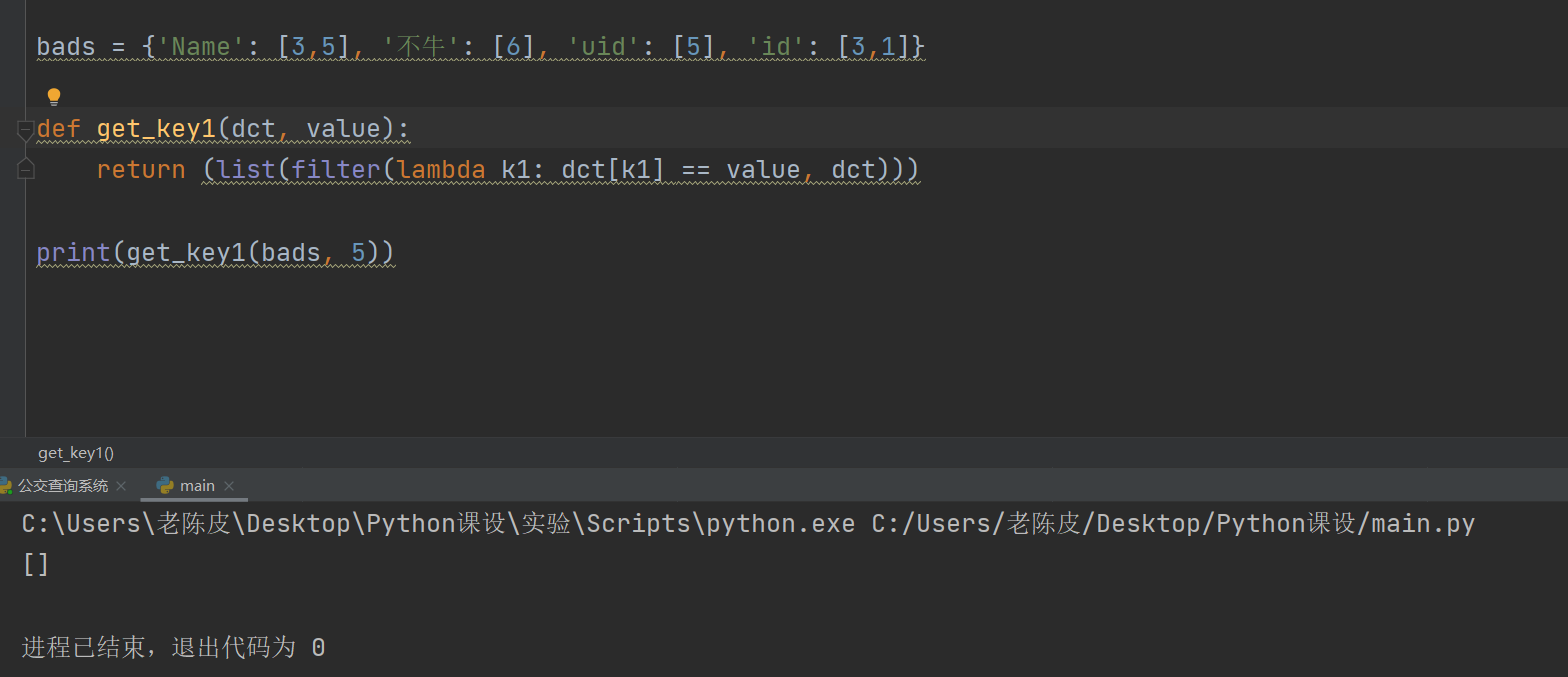 这时函数返回的值是个空的列表,也就是没有符合条件的值,这和我们的目的明显是不符的.我们可以更改代码使用for循环遍历来达到目的.