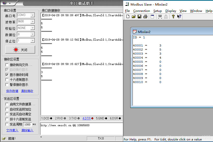 Modbus主站(modbusMaster):主动发出指令,要求读取数据的一端(此实验中为arduino)。