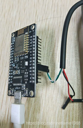 USB转TTL,一端接电脑USB,一端接ESP8266 D7,D8