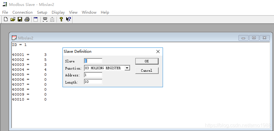 mbslave 从机模拟器设置 Setup->Slave Definition