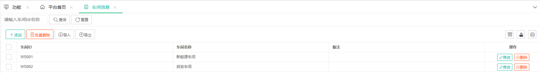 车间ID、车间名称 |