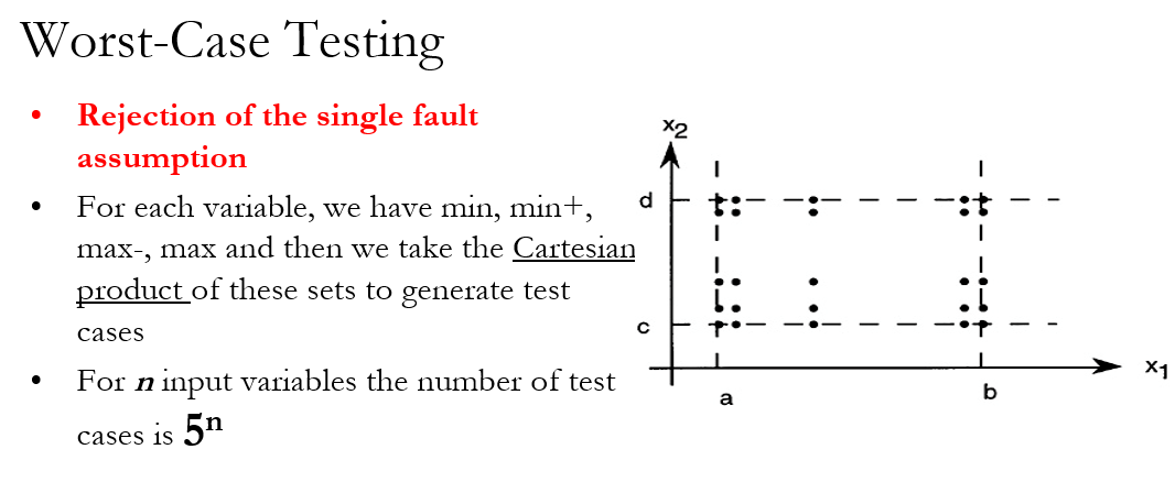 𝑥_𝑖 assumes all 5 values from above 𝑥_𝑖 假设上述所有5个值 - n variables yield 4n+1 test cases n个变量产生4n+1个测试案例
