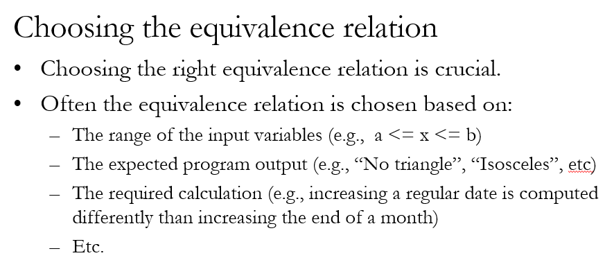 - Each of these classes is an equivalence partition where the program behaves in an equivalent way for each class member