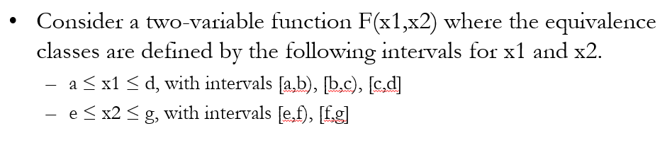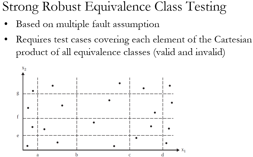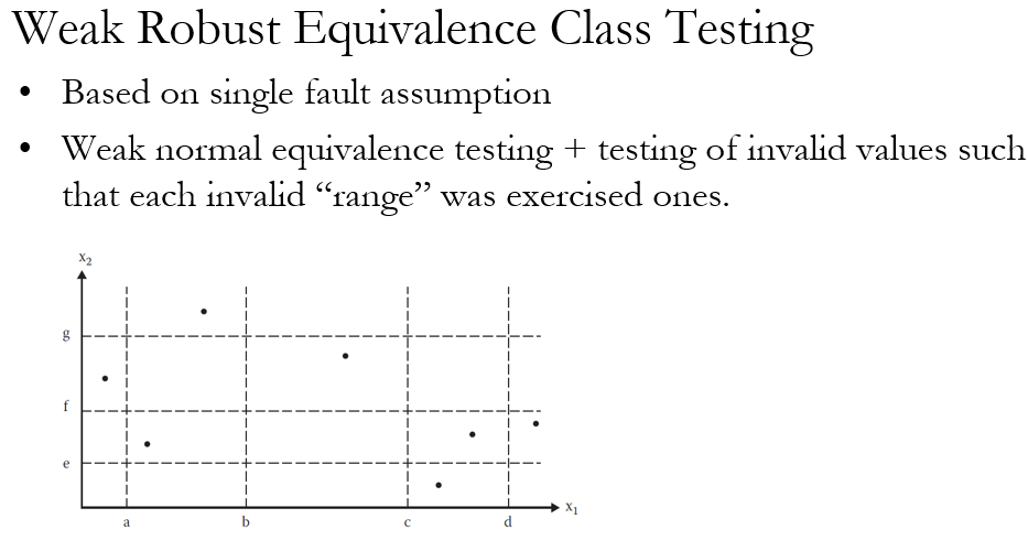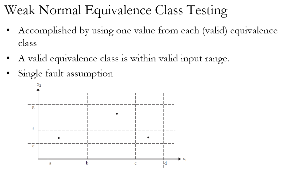 - Test cases are identified by using one element from each equivalence class. 测试用例通过使用每个等价类中的一个元素来确定。