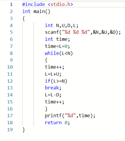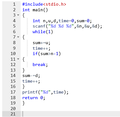 数据表达:int定义n,u,d,time=0,sum=0;scanf定义n,u,d。