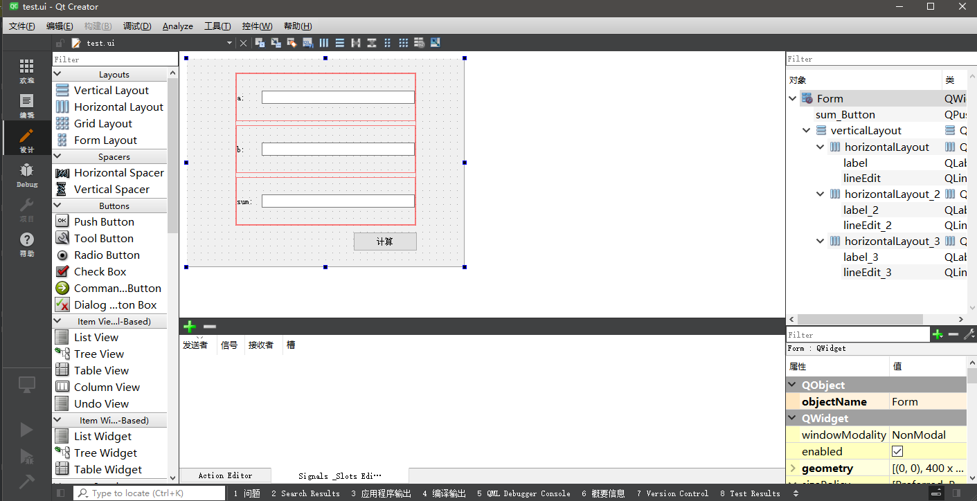2、实验Qt Designer设计的ui文件,如新建一个test.ui文件