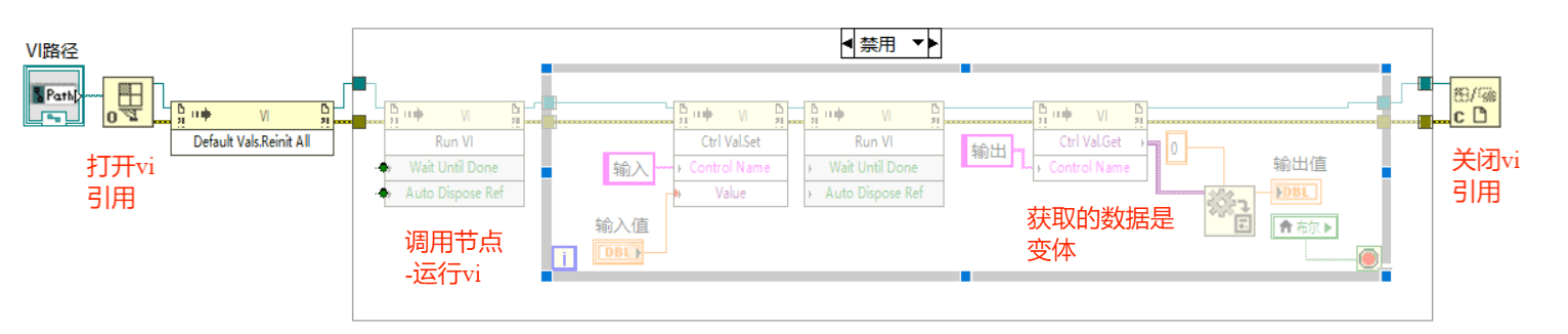 除此之外可以通过"调用节点"完成对被调用vi的参数初始化、入参等等操作。
