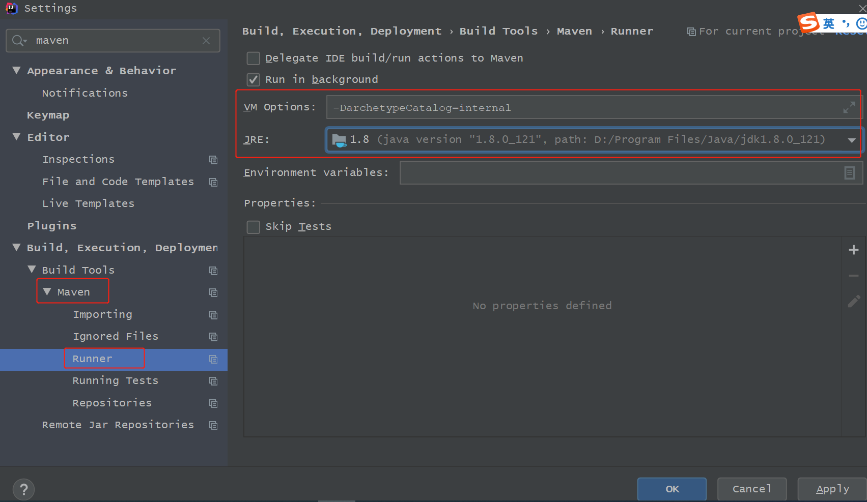maven项目创建时,会联网下载模版文件,比较大, 可以设置DarchetypeCatalog=internal,不用下载, 创建maven项目速度快