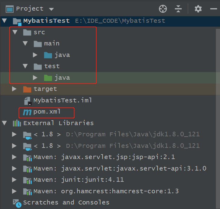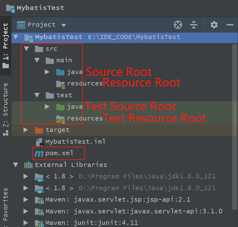 在新建的目录上右击--Mark Directory as--资源目录,如下图所示,得到完成的maven-java项目目录结构