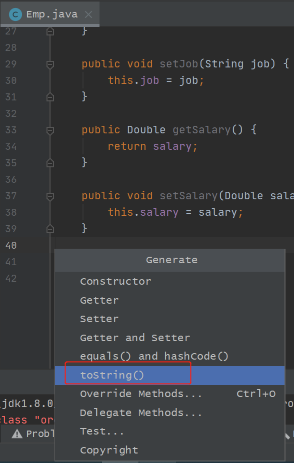 一、在类中Alt+Insert快捷键,找到重写toString方法