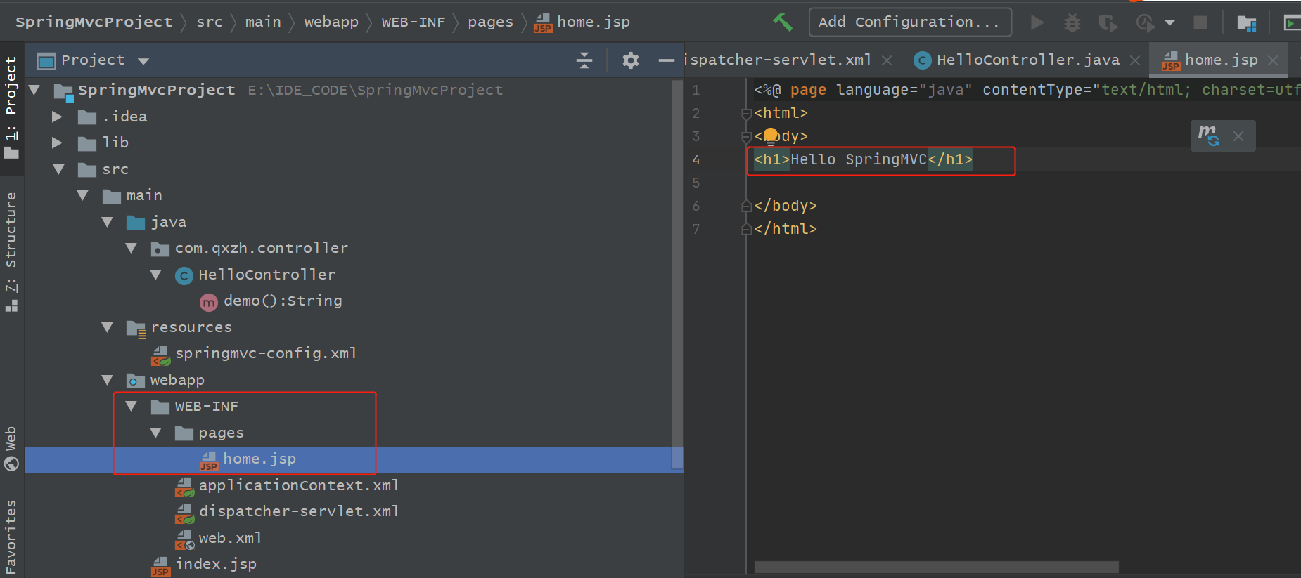 <!-- 完整的路径:前缀+名字+后缀 /WEB-INF/pages/home.jsp-->