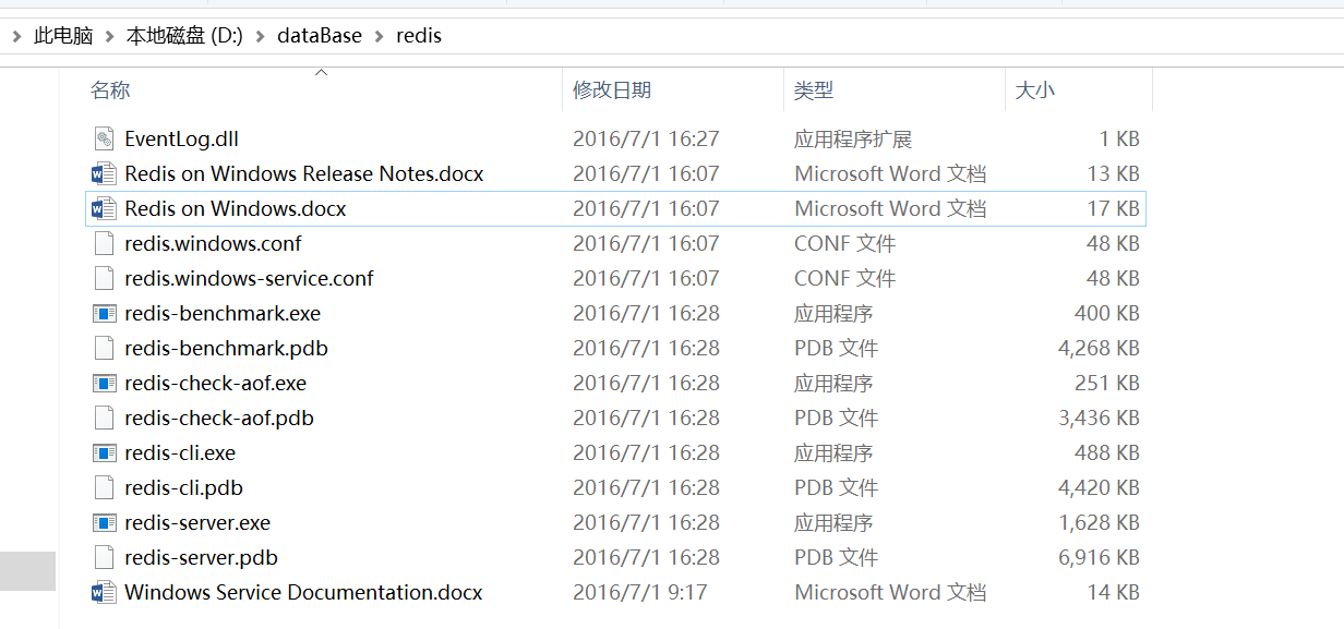 下载解压到 D:\dataBase\redis