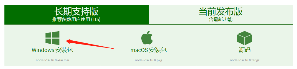 1.1. 登录Node.js官方网站,下载Node.js软件包。请选择LTS版本,Windows 64位对应的软件包。