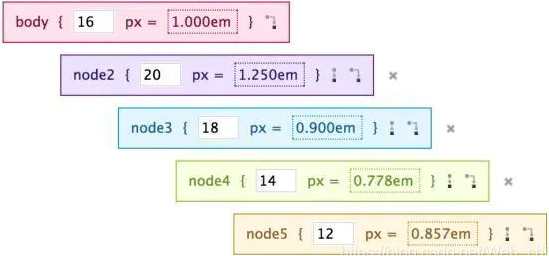 em做弹性布局的缺点还在于牵一发而动全身,一旦某个节点的字体大小发生变化,那么其后代元素都得重新计算。