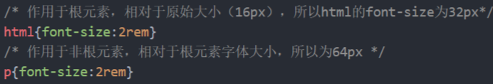 注:rem 作用于非根元素时,是相对于根元素的字体大小;rem作用于根元素字体大小时,相对于其初始字体大小。