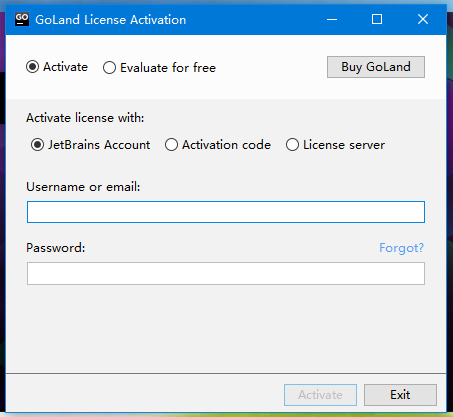 然后打开JetBrains GoLand 2019.2.3 x64,Licesnse server输入https://fls.jetbrains-agent.com即可