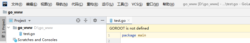 运行 Goland ,你会发现 Goland 中的菜单已经变成我们熟悉的中文了