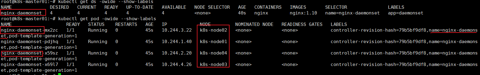 # kubectl create -f nginx-daemonset.yaml # kubectl get ds -owide --show-labels # kubectl get pod -owide --show-labels