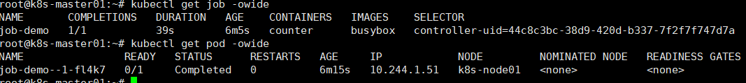 # kubectl create -f job.yaml # kubectl get jobs -owide