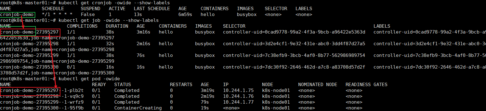 apiVersion: batch/v1 kind: CronJob metadata: name: cronjob-demo spec: schedule: "*/1 * * * *" jobTemplate: spec: #completions: 3 #parallelism: 2 template: spec: restartPolicy: OnFailure containers: - name: hello image: busybox args: - "bin/sh" - "-c" - "for i in 9 8 7; do echo $i; done"