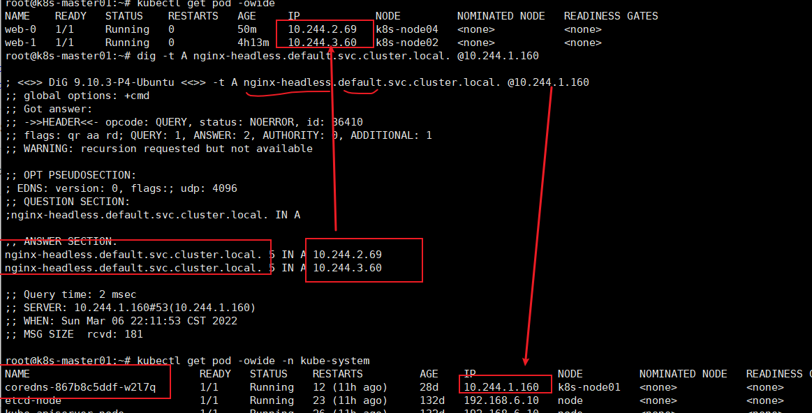 # dig -t A nginx-headless.default.svc.cluster.local. @10.244.1.160
