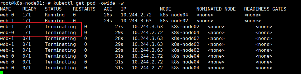 # kubectl delete -f sfs.yaml # kubectl get pod -owide -w