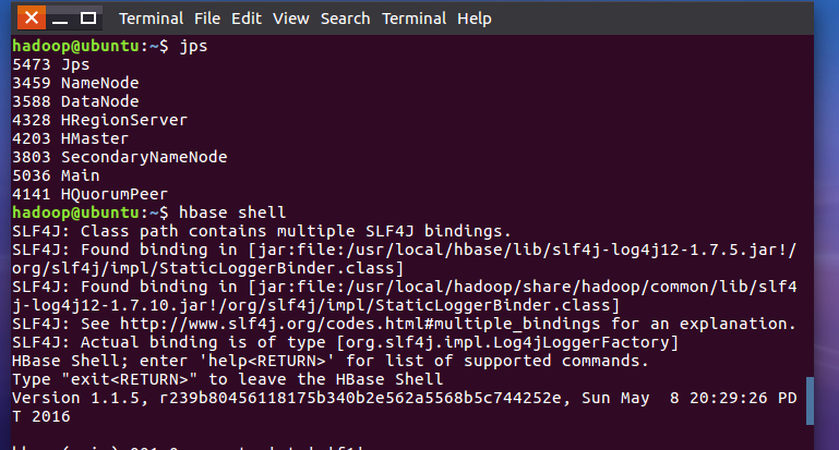 2.启动HDFS,启动HBase,进入HBaseShell命令行。