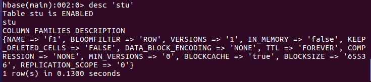 3.列出HBase中所有的表信息list