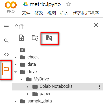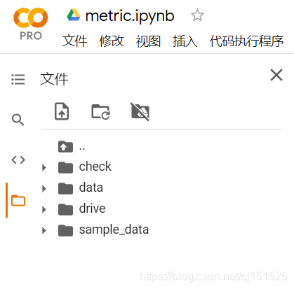 进入Colab之后,点击如下红色框内的图标会生成下列代码,如果没有生成也可以复制到Colab笔记本执行即可连接云盘。这个时候只需要打开生成的URL,使用谷歌账号登录到目标云盘,可以是别人的云盘,输入验证码即可连接到云盘,云盘的根目录是 content,云盘目录是content/drive/MyDrive 。Colab笔记本代码会保存在Colab NoteBooks下面。而目录的data 、check是我自己生成的目录,这些目录一旦资源释放,就会全部被清空。