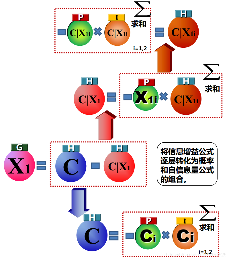 解释:Y为标签,对于属性 ,系统在有它与没它时的信息量的差值就是能给系统带来的信息增益。