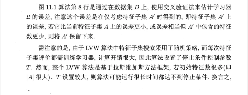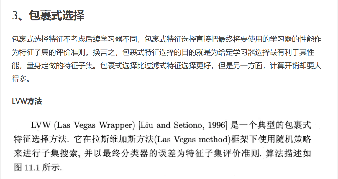 } 得分最高,然后加入一个........,直到加入一个特征评分不如上一次的选定子集,停止生成候选子集,选取上一轮的特征子集为特征选择结果。如下图: