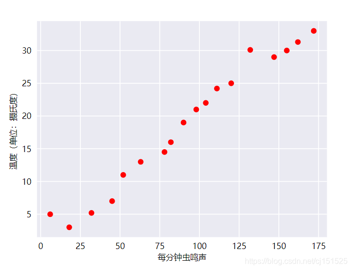 图 1. 每分钟的鸣叫声与温度(摄氏度)的关系。