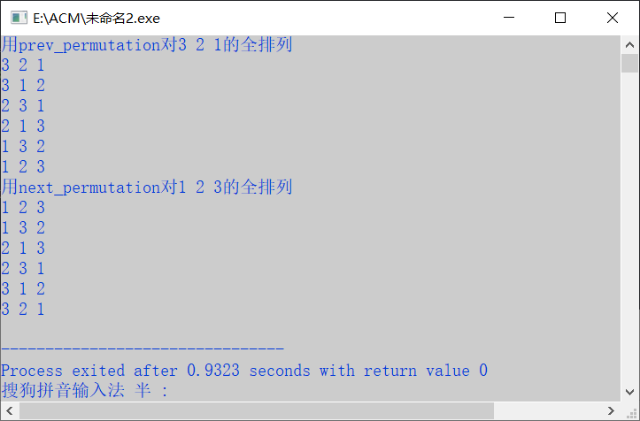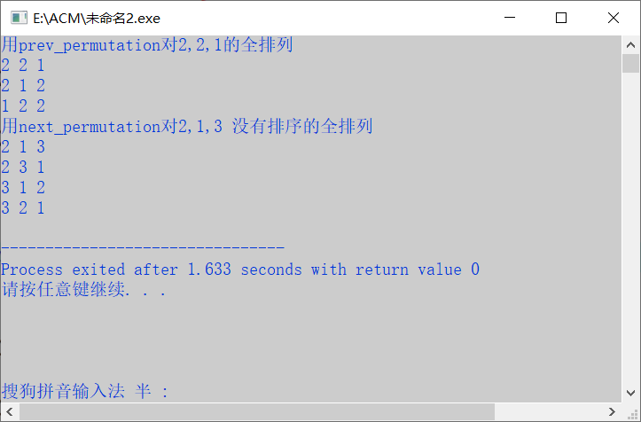 cout<<"用prev_permutation对3 2 1的全排列"<<endl;