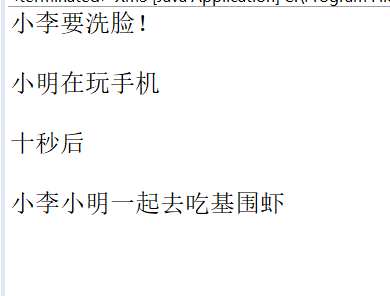 看例子:小明和小李相约一起去吃早饭,但是小李起的有点晚要先洗漱,等小李洗漱完成后,通知小明再一起去吃饭。小明就是类A,小李就是类B。一起去吃饭这个事件就是方法a(),小李去洗漱就是方法b()。