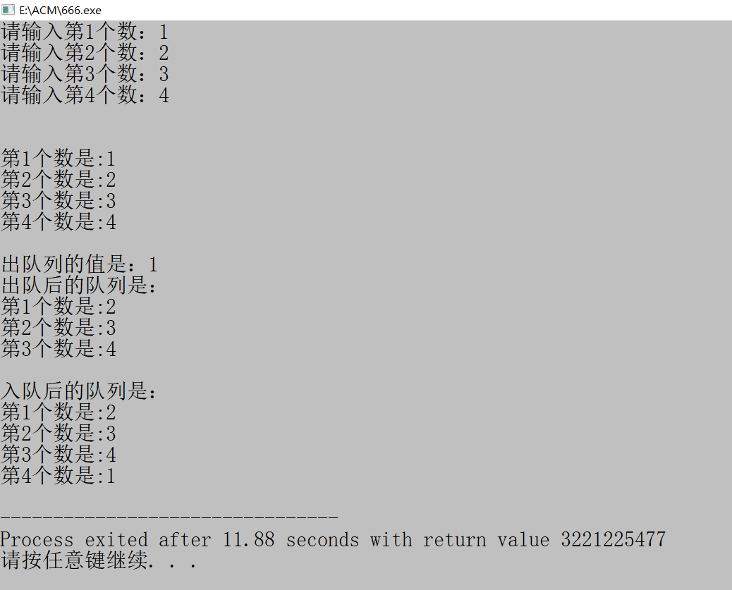 printf("第%d个数是:%d\n",++i,Q.front->data);