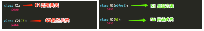 - Python2中带object的叫经典类,不带object的叫新式类,但是在Python3中取消了这一特性,所有的类默认为新式类