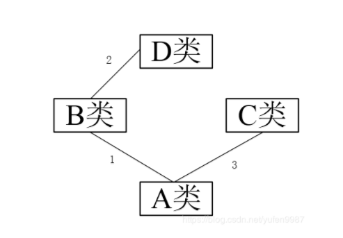 深度优先(经典):当调用A类test函数时,如下图所示,先查找A类中有无test函数,再查找B类,再查找D类,最后查找C类。