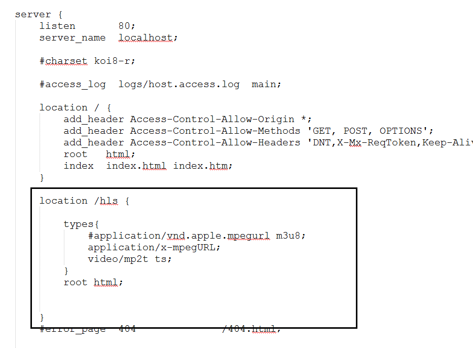 第一步和第二步和上面一样,安装ffmpeg和nginx,在nginx中添加配置信息: