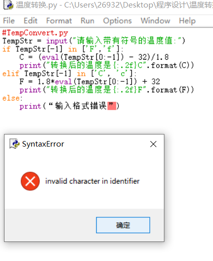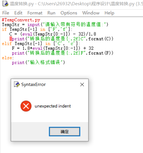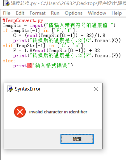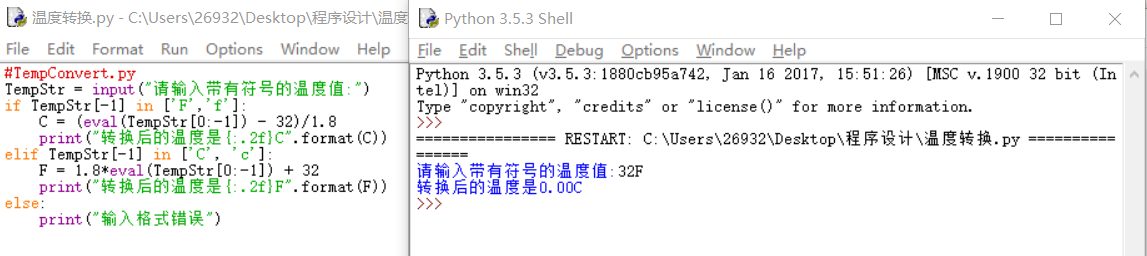 2、运行第一章课本的温度转换示例程序。在运行过程中