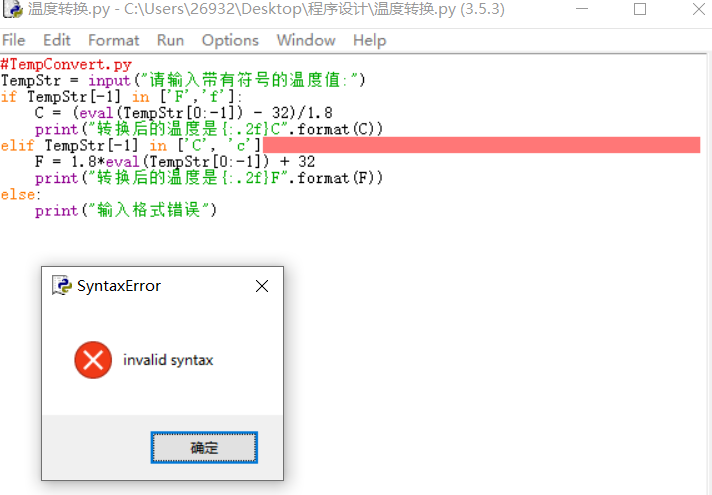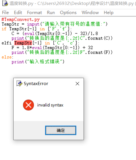 (2)(重点)人为按照以下情况分别把程序改错,尝试运行程序,并观察结果记录 IDLE